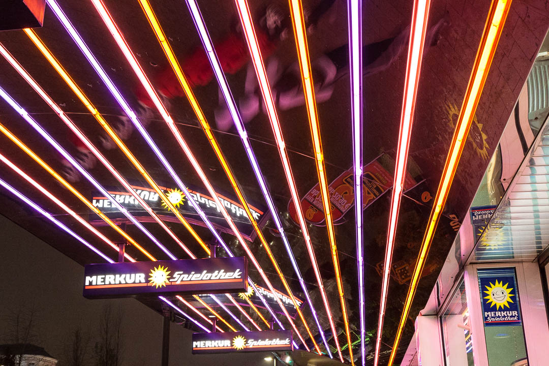 The Reeperbahn is a major street in Hamburg that has a reputation, only somewhat deserved, for being the centre of the Hamburg sex trade. While some establishments reinforce the impression, there are many regular hotels and decent restaurants to be found. This particular night was cold and wet but it was still great fun capturing the bright lights and vivid colours.